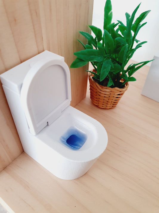 Dollhouse White Modern Toilet With Working Hinged Toilet Lid and Blue Toilet cleaner, 12th Scale, Miniature Toilet, Miniature Bathroom
