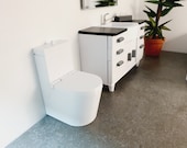 Dollhouse White Modern Toilet With Working Hinged Toilet Lid and Blue Toilet cleaner, 12th Scale, Miniature Toilet, Miniature Bathroom