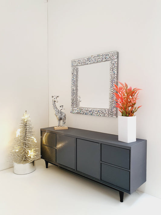 Dolls House Modern Large Square Mirror with Silver or Gold Rhinestones , Miniature Mirror, 12th Scale Mirror
