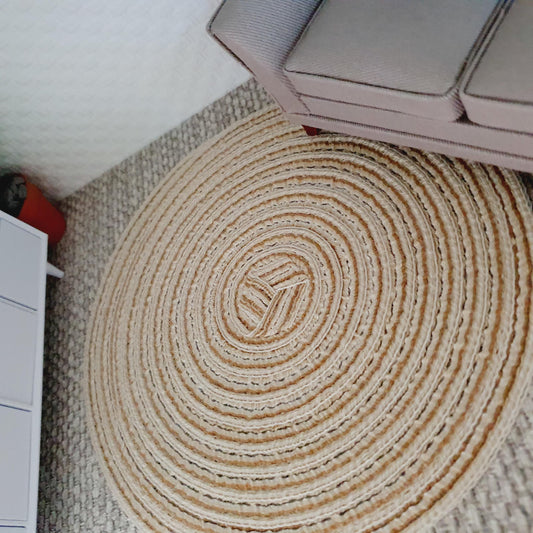 Dolls House Modern Round Beige Rug 1:12th Scale, Miniature Rug