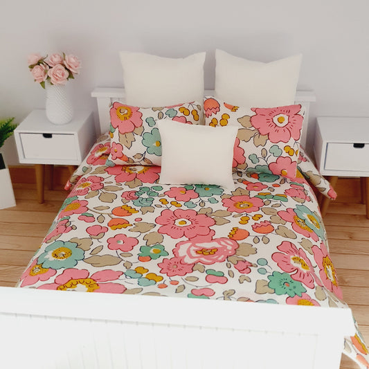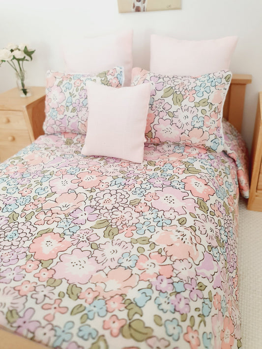 Dolls house 6 piece set, Double bedding, Liberty Michelle floral print, 12th scale bedding, miniature bed set (BD4)