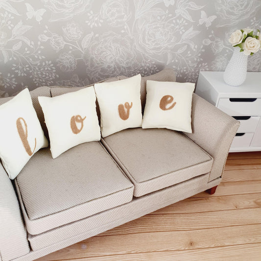 Dolls house 4x Love cushions | Cream cushions | 12th scale miniature cushions