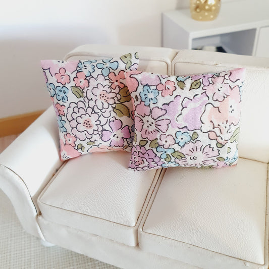 Dolls house 2x Floral Liberty Cushions, Choice of colours , 12th scale cushions, miniature cushions