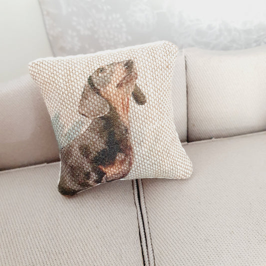 Dolls house 1x Sausage Dog cushion, Cute Dachshund cushion, 12th scale cushions, miniature cushion