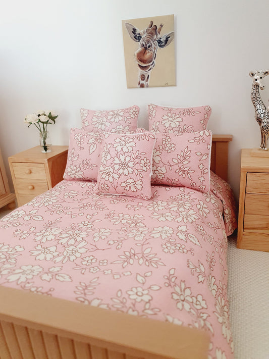 Dolls house 6 piece set, Double bedding, Liberty Betsy Light Pink floral print, 12th scale bedding, miniature bed set