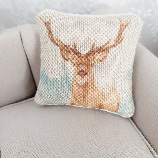 Dolls house 1x Stag cushion, Cute Stag cushion, 12th scale cushions, miniature cushion
