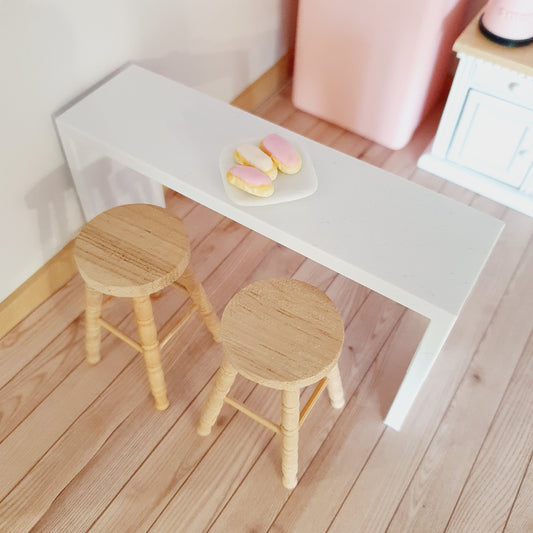 Dolls House 2x Wooden Bar Stools, 1:12th Scale, Miniature Bar Stool (K-BS2)