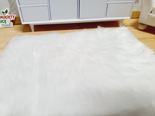 Dolls House White Short Pile Fur Rug | 1:12th Scale | Miniature Rug