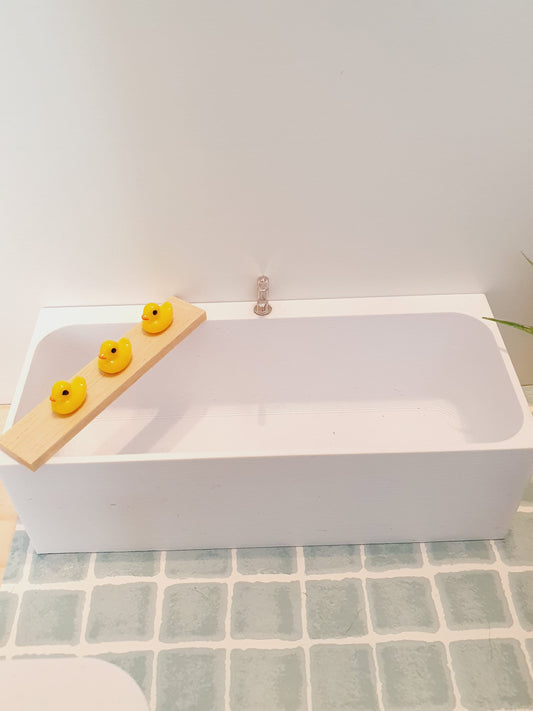 Dolls House Wooden Bath Board & a 3 Tiny Yellow Ducks, 1:12th Scale, Miniature ducks
