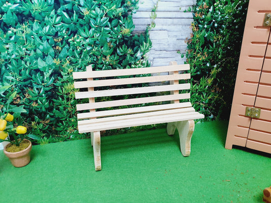 Dolls House White or Natural Wooden Garden Bench 1:12th Scale, Miniature Bench