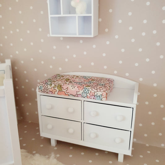 Dolls House White Modern Baby Changing Table with Liberty Michelle changing pad, 1:12th Scale, Miniature