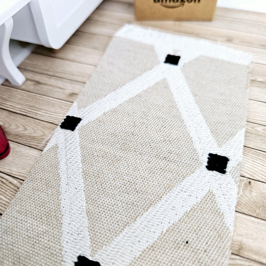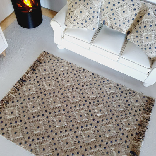 Dolls House Beige Pattern Rug / Runner | Linen Rug | 1:12th Scale | Miniature Rug