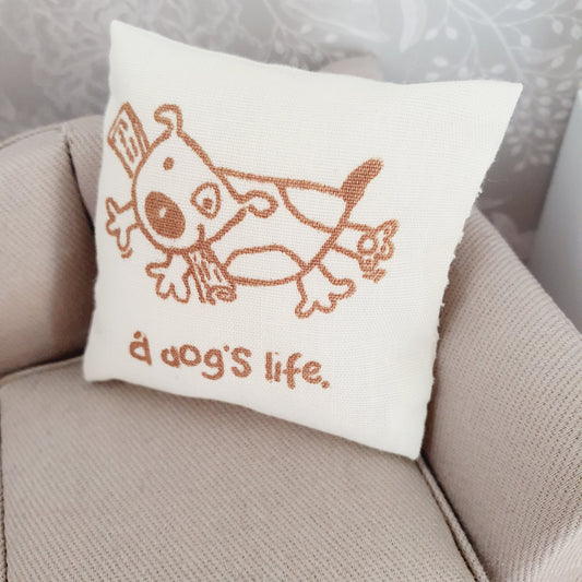 Dolls house A Dogs Life Cushion | Quote Cushion | 12th scale cushions, miniature cushions