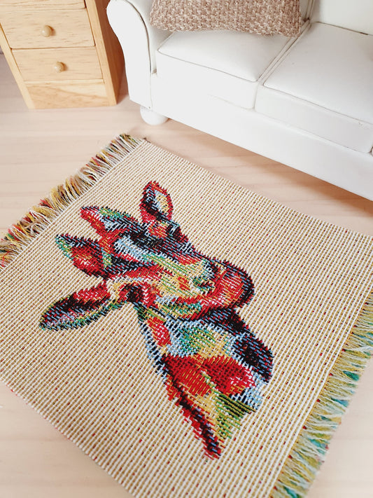 Dolls House Beige Rug with Colourful Giraffe | Linen Look Rug | 1:12th Scale