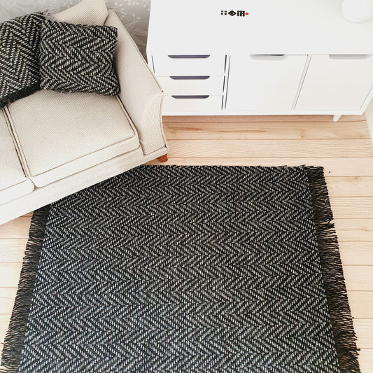 Dolls House Black Herringbone Rug | 1:12th Scale | Miniature Rug