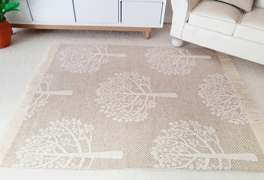 Dolls House Beige with White Trees Linen Look Rug | 1:12th Scale | Miniature Rug