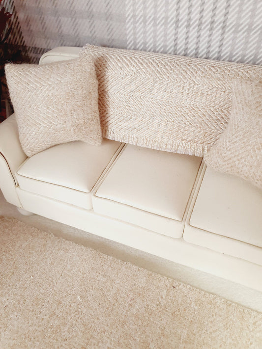 Dolls house 7 piece set, Double bedding, Cosy Cream boucle with cream throw, 12th scale bedding, miniature bed set