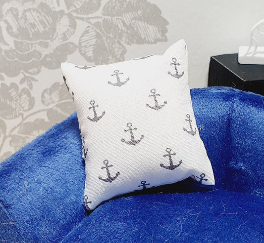 Dolls house Anchor Cushions Pair | White and Grey | 12th Scale Cushions, Miniature Cushions