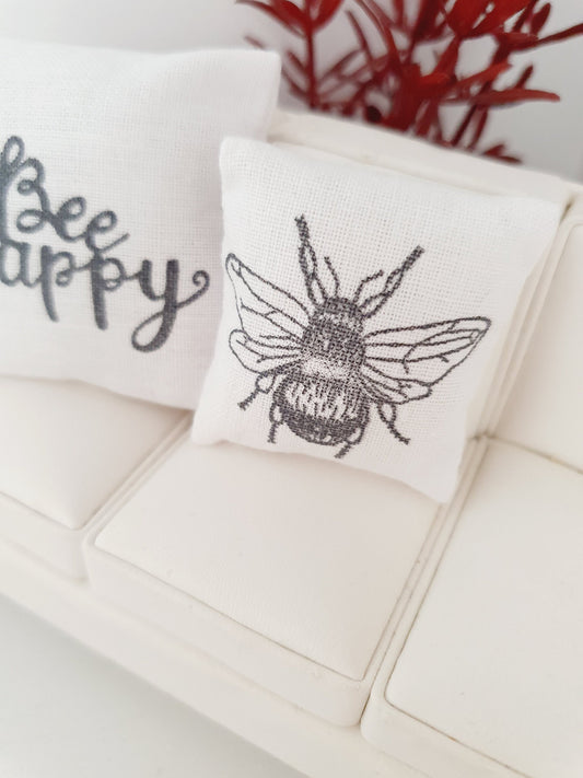 Dolls house Bee & Bee Happy Cushion Pair, 12th scale cushions, miniature cushions