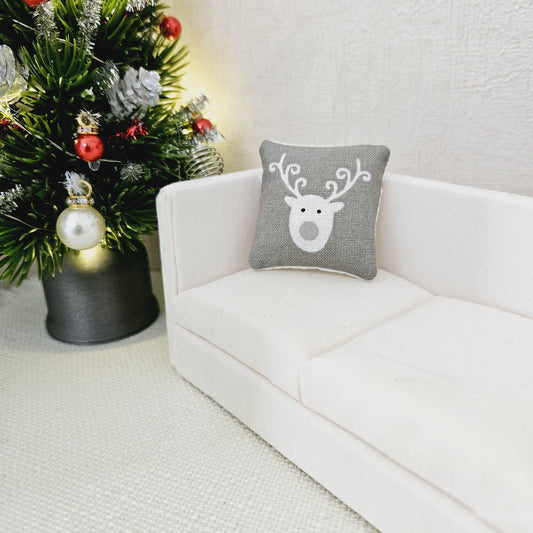 Dolls House Christmas Cushion | White Reindeer Design | Choice of Colours | 1:12 Scale Miniature