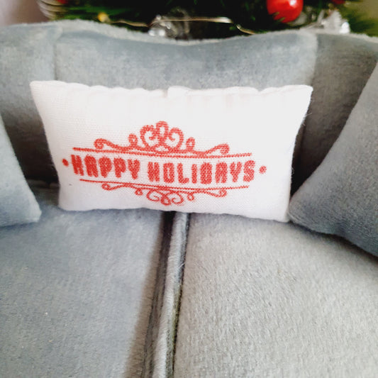 Dolls House Christmas Happy Holidays Cushion, 12th scale cushions, miniature cushion