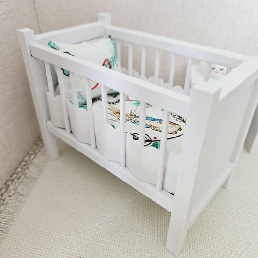 Dolls House Christmas Cot Bedding Set – Peter Rabbit Design, Handmade in England, 1:12 Scale