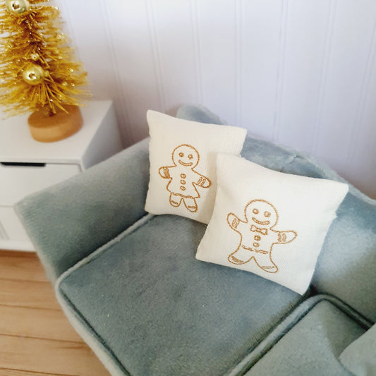 Dolls house Christmas Mr and Mrs Gingerbread Cushions, 12th scale cushions, miniature cushions