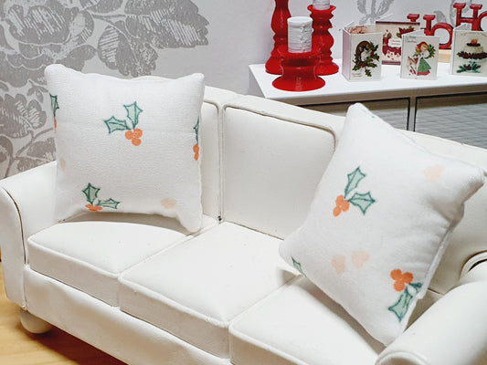 Dolls house Christmas Holly cushion Pair, 12th scale cushions, miniature cushions