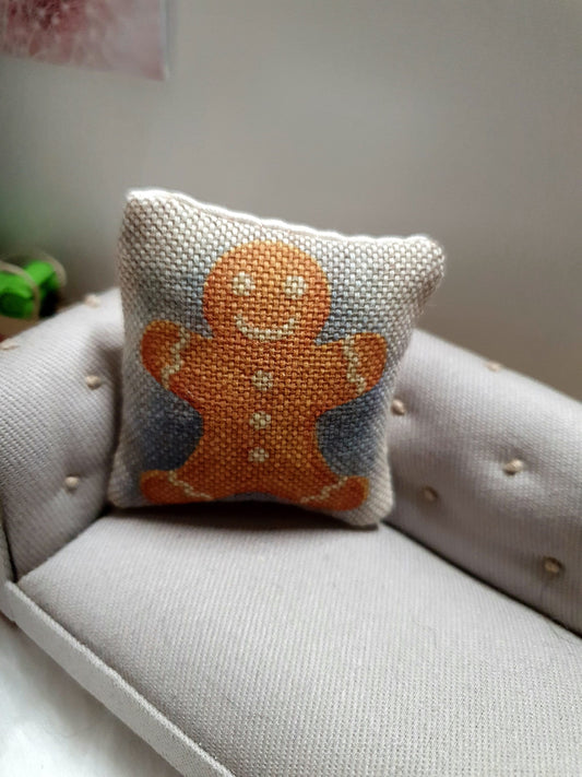 Dolls house Christmas Gingerman Man Cushion, 12th scale cushions, miniature cushions