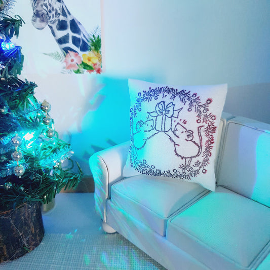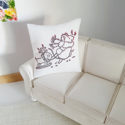 Dolls house Christmas Mouse and Reindeer Cushion, 12th scale cushions, Miniature Christmas cushion