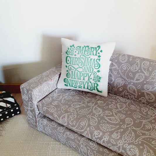 Dolls house Christmas Merry Christmas Cushion, 12th scale cushions, Miniature Christmas cushion
