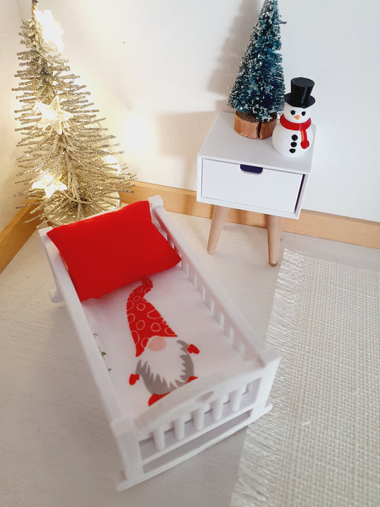 Dolls House Christmas Crib Bedding – Gnome Design, Handmade in England, 1:12 Scale