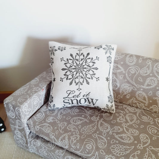 Dolls house Christmas Let it Snow Cushion, White with black Snowflake cushion, 12th scale cushions, miniature cushion