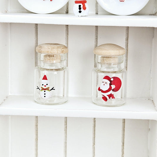 Dolls House Christmas Jars, Set of 2, jars with lids, 12th scale, miniature jar/ vase