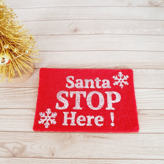 Dolls House Christmas Door Mat | "Santa Stop Here!" Red Fabric Mat | 1:12 Scale Miniature