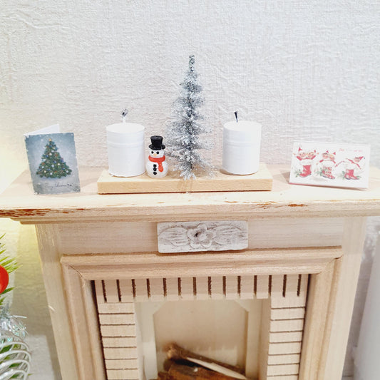 Dolls House Christmas Ornament, Christmas Tree & a Tiny Snowman. 2x Candles on a Stand, 1:12th Scale, Miniature Christmas Ornament