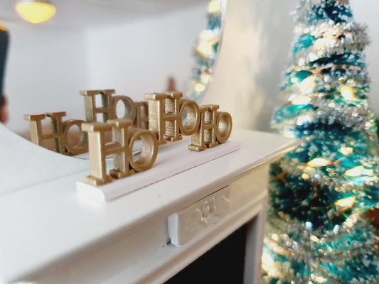 Dolls House Christmas Ornament, Ho Ho Ho Freestanding, Choice of colours, 1:12th Scale, Miniature Christmas Ornament