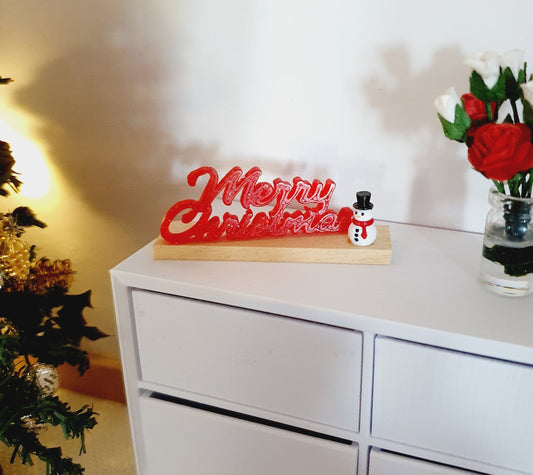 Dolls House Christmas Ornament, Merry Christmas & a tiny snowman on a Stand, 1:12th Scale, Miniature Christmas Ornament