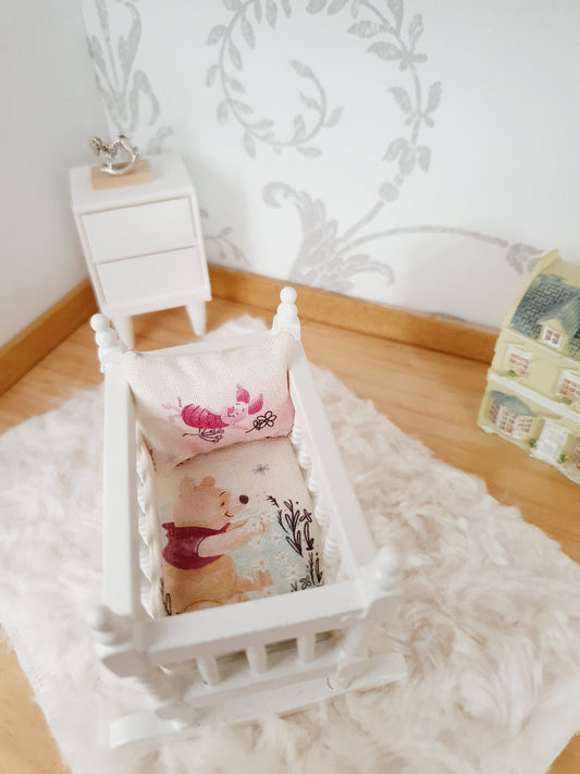 Dolls House Cot Bedding Set – Winnie the Pooh & Piglet Design, Handmade in England, 1:12 Scale