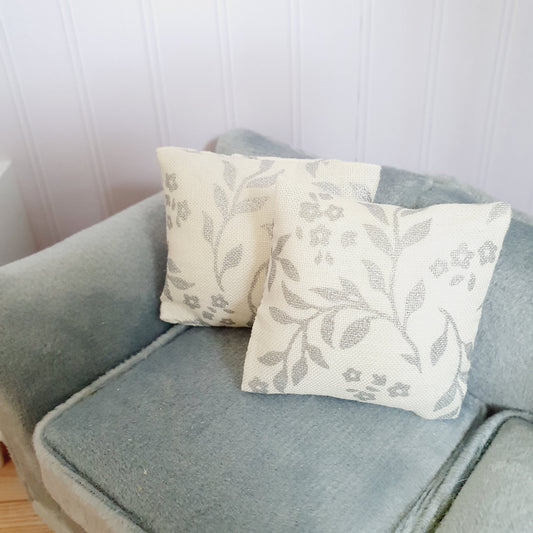 Dolls house Cream with Silver Leaf cushion Pair, 12th scale cushions, miniature cushions