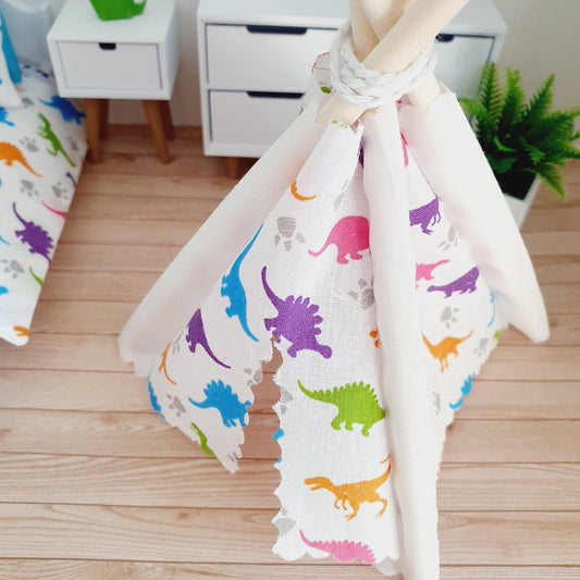 Dolls house Cute Dinosaur TeePee | Tent & Floor cushion, 12th scale tent, miniature teepee, Tipi, Tent
