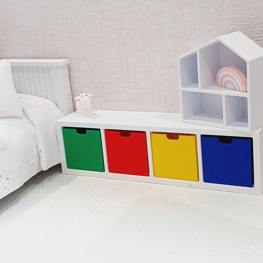 Dolls House Cube Storage Unit | 4 Compartments with Boxes | 1:12 Scale