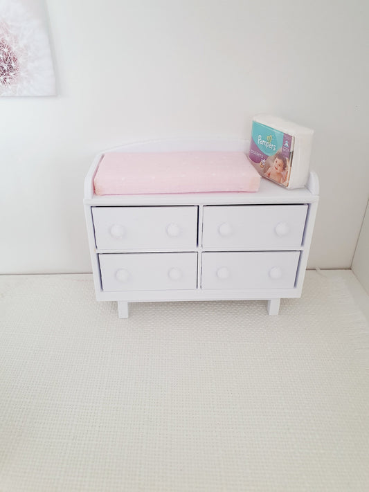 Dolls House Coloured Modern Baby Changing Table, Choice of Colours 1:12th Scale, Miniature (UN-6)