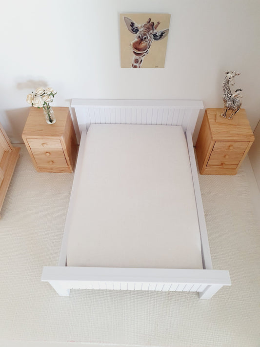 Dolls House Double Bed, Choice of Colours, 1:12th Scale, Miniature Bed with White Mattress