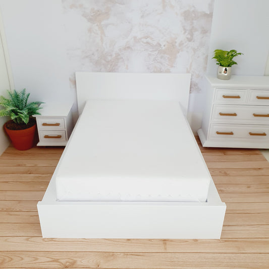 Dolls House Junior Bed, Modern Doll House Furniture. 1:12th Scale, Miniature Bed (BRJB)