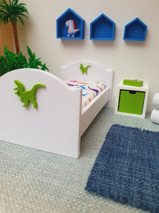 Dolls House Dinosaur Junior Bed White, 1:12th Scale Children's furniture, Miniature Bed