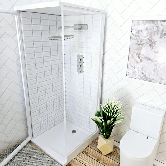 Dolls House Modern Shower Cubicle | Acrylic Door & Metro Tiles | 1:12 Scale Miniature