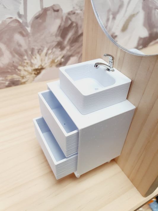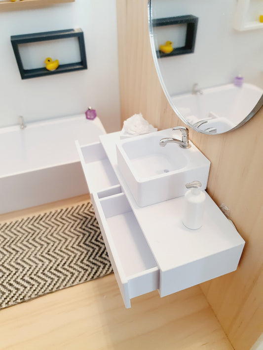 Dolls House Modern Bathroom Vanity Unit with a Round or Square Sink, Choice of Colours 1:12th Scale, Miniature Sink