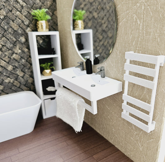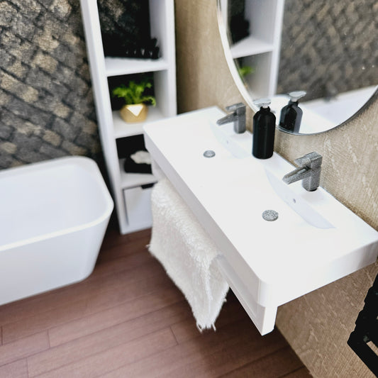 Dolls House Modern Double sink vanity with towel rail, Bathroom Vanity, 1:12th Scale, Miniature sink