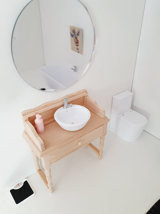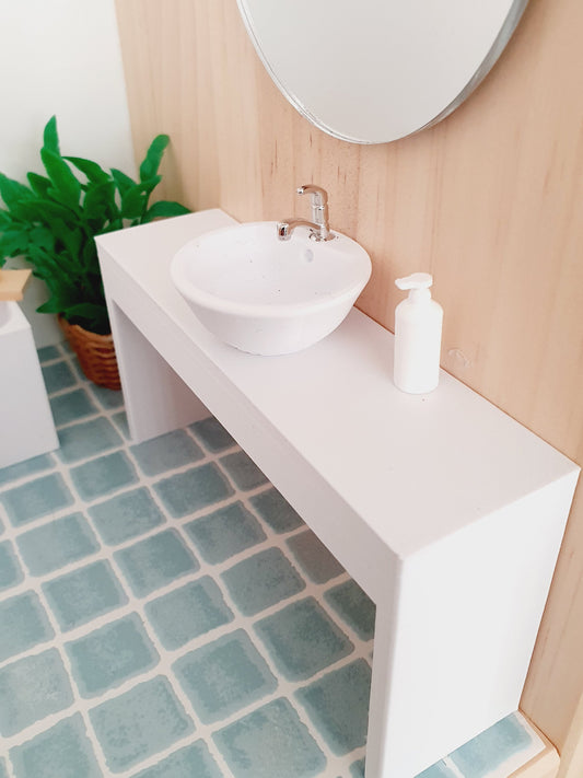 Dolls House Modern Bathroom Vanity with White Round or Square Sink 1:12th Scale, Miniature Cloakroom Sink